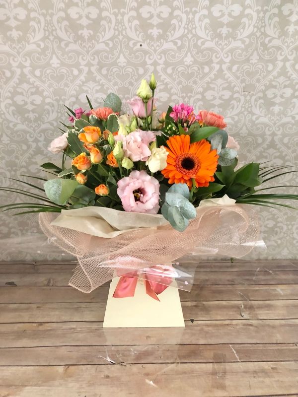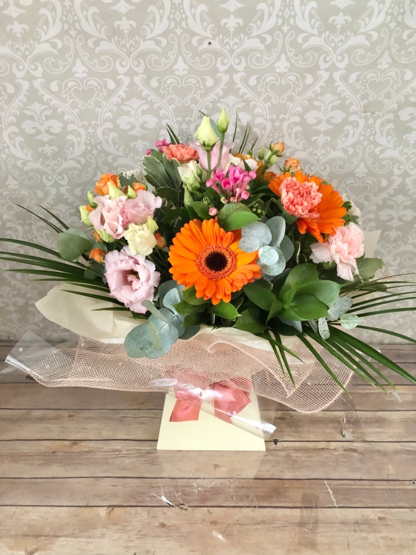 Designed by our expert florists, the Autumn Splendour Bouquet showcases the finest seasonal blooms in gorgeous pinks, oranges and creams. Beautifully complimented with green foliage, hand-tied and presented in a stylish gift box.